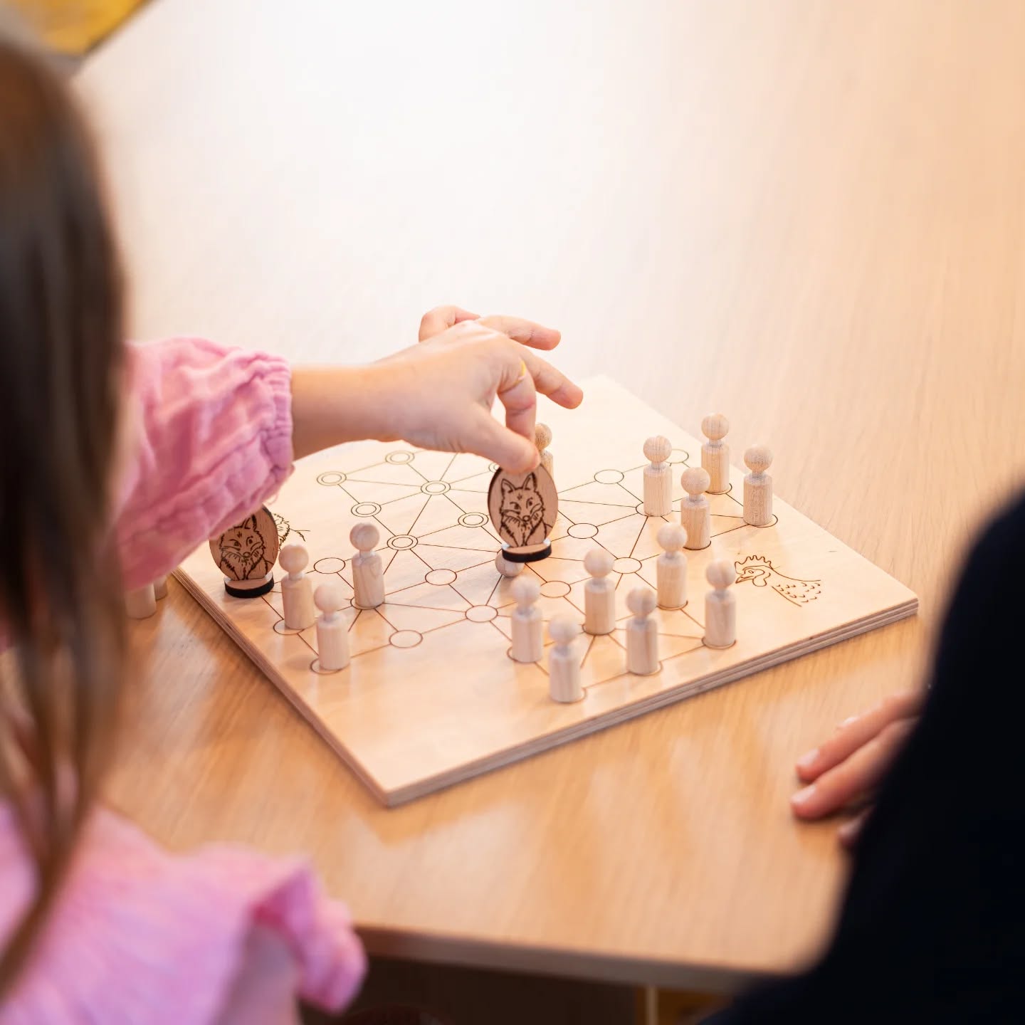 Der Brettspiel Klassiker "Fuchs & Henn" aus Holz, ein Handwerksprodukt aus dem Waldviertel in Kooperation mit Drechslermeister Reiter Andreas aus Zwettl.