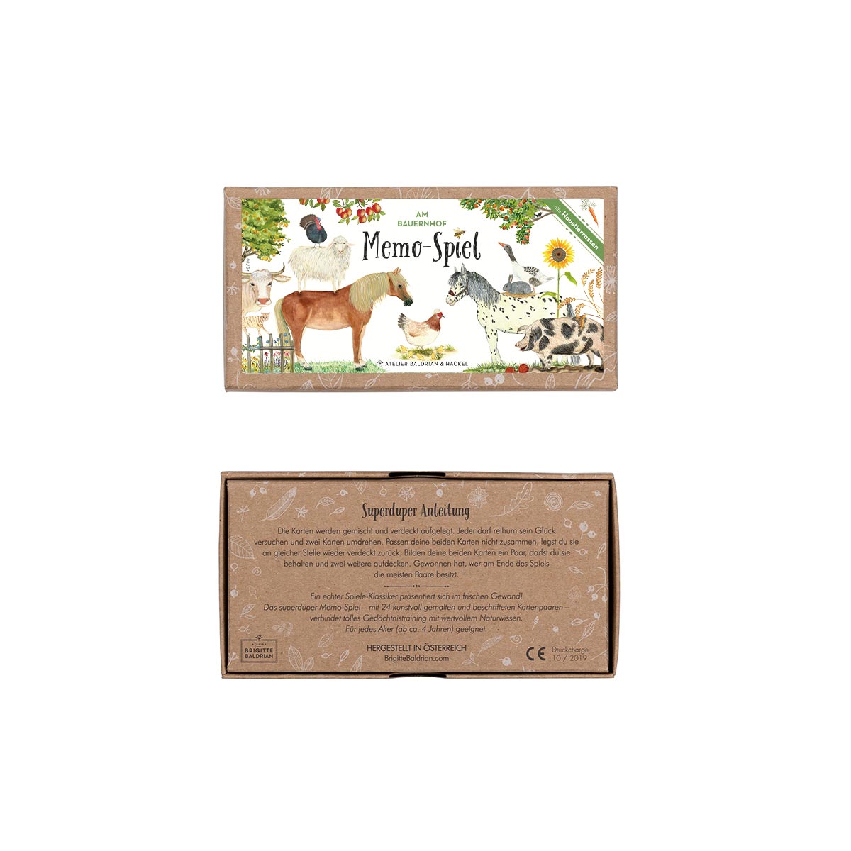 Das Memo-Spiel „Am Bauernhof“ vermittelt spielerisch wertvolles Wissen für Jung und Alt. Eine Fülle an alter Haustierrassen (Zackelschaf, Waldviertler Blondvieh, Steirische Scheckenziege, Sulmtaler Huhn,…) zeigt die Vielfalt unserer heimischen Bauernhöfe. Feldfrüchte und andere Bauernhofmotive sorgen für ein abwechslungsreiches Spiel.