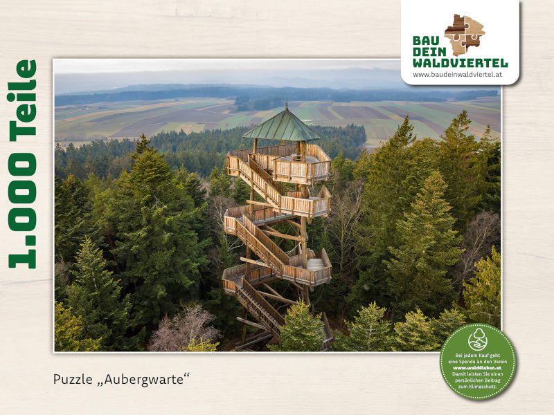 Holt Euch ein Stück Natur nach Hause! Die Aubergwarte, das Wahrzeichen und ein sehr beliebtes Ausflugsziel der Marktgemeinde Großgöttfritz jetzt als schöner Blickfang und regionalen Puzzle Spaß für zu Hause. Dem Besucher bietet sich ein herrlicher Ausblick über unser das schöne Waldviertel und teilweise weit darüber hinaus.
